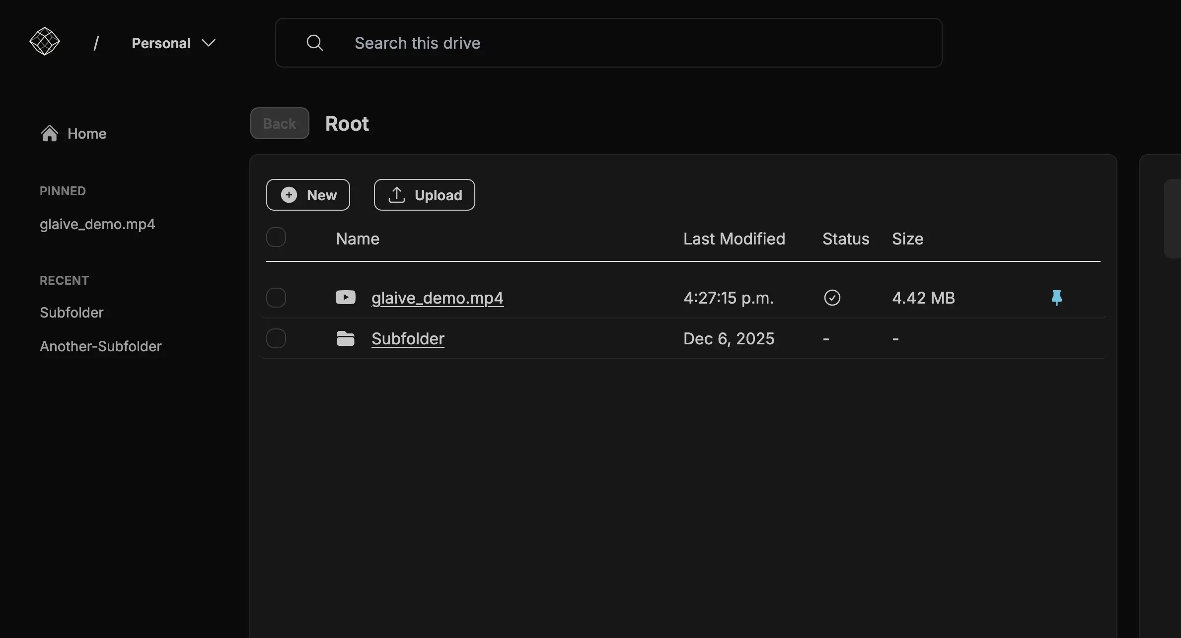 Full filesystem in the browser: Upload files, create folders, move things around—all the familiar file management you'd expect.